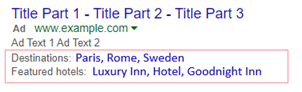 Sitelinks help a user navigate to a specific page deeper on your site than just the landing page of the ad. A sitelink consists of one 25-character link text, two 30-character description lines, and a final URL.