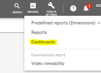You can find the “Dashboards” section under “Reports” in Google Ads.