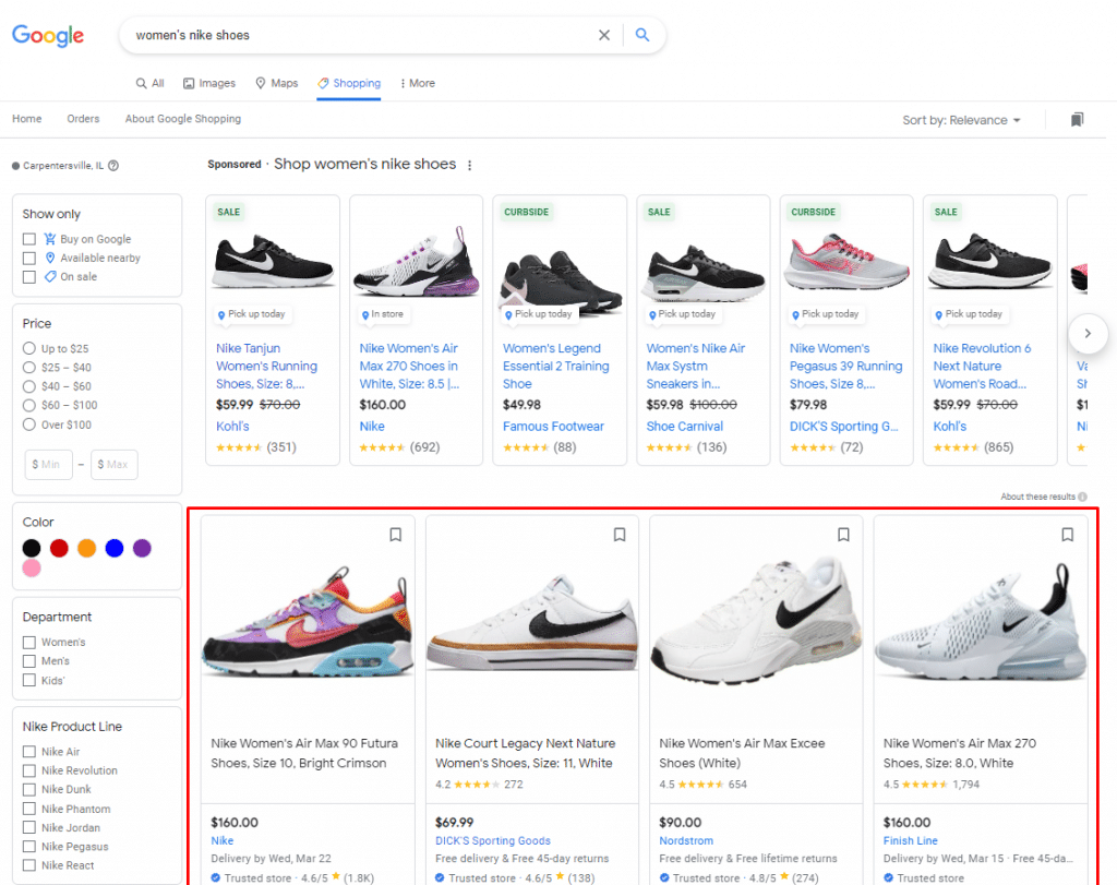 - Google Images: Google images is an under-rated tab on Google, where you can hone in on images. Free product listings can show there, usually as a carousel, and include a Product tab, as well as the price and where it can be purchased.