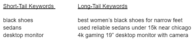 Long-tail keywords are highly specific and more niche. They often signal a user’s intent to purchase or find precise information.