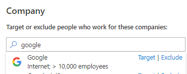 - Company: one of the most interesting targeting methods, Company is just that – the ability to target employees at specific companies. Want to market to all Googlers? You can do that.