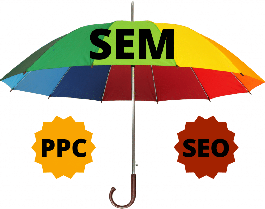 For me, it was easiest to think about online advertising and SEM as a big umbrella with PPC and SEO underneath.