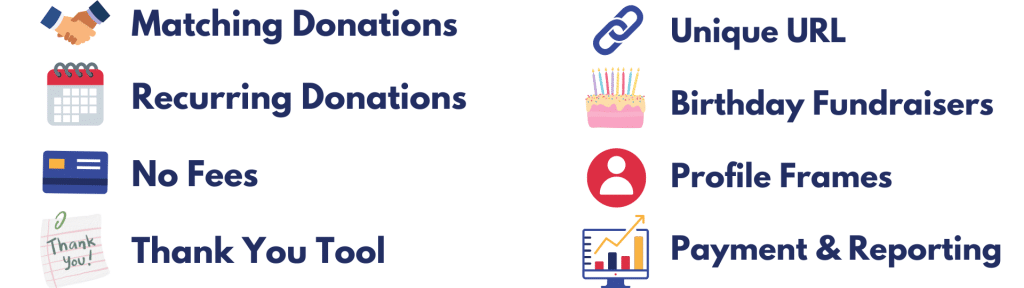 - Live Video with Donate Button – Connect instantly with people who care through a live broadcast, and add a donation button.